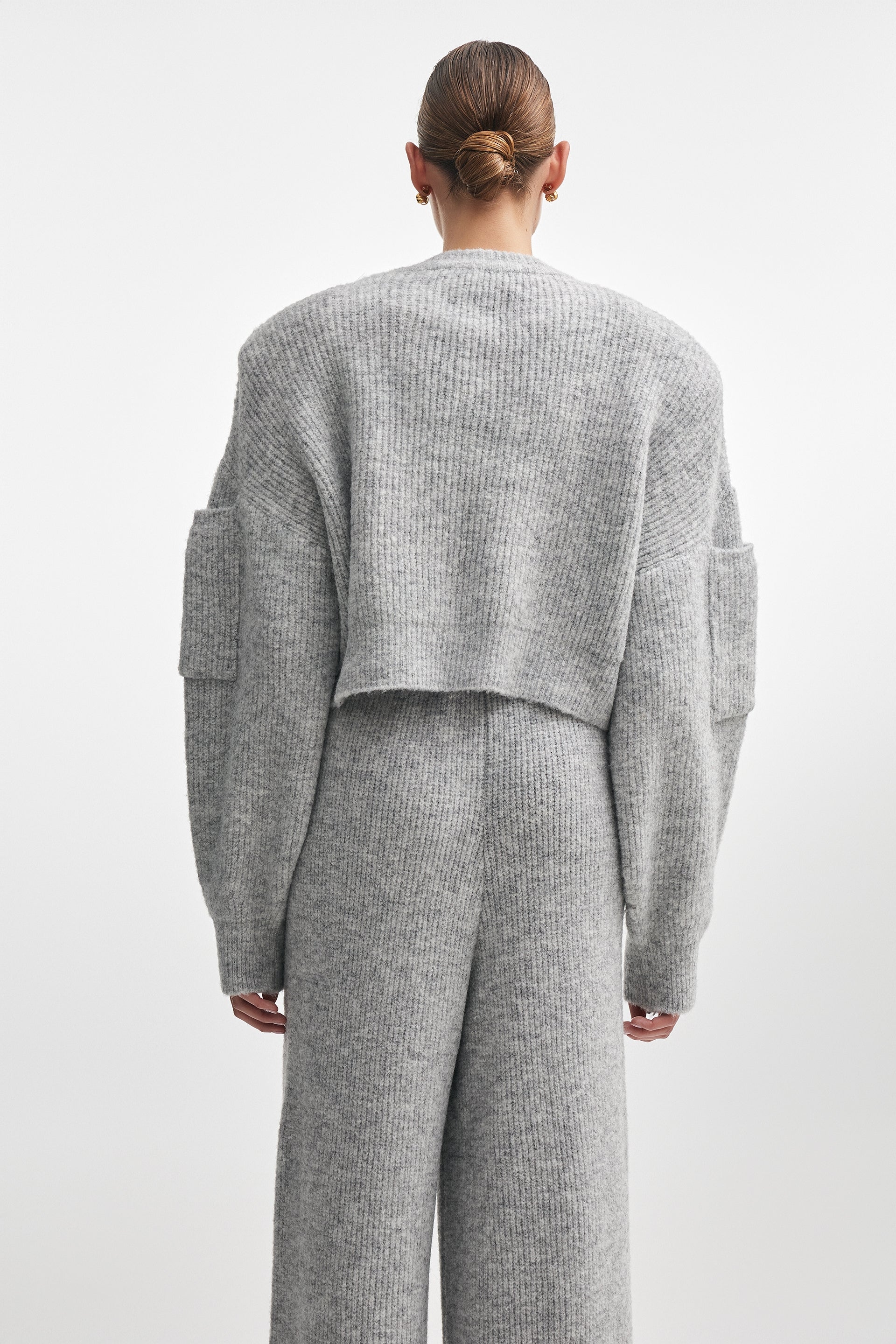 A refined cropped knit with a clean crew neckline. Sculptural sleeves add quiet volume, creating a modern silhouette with ease and comfort.