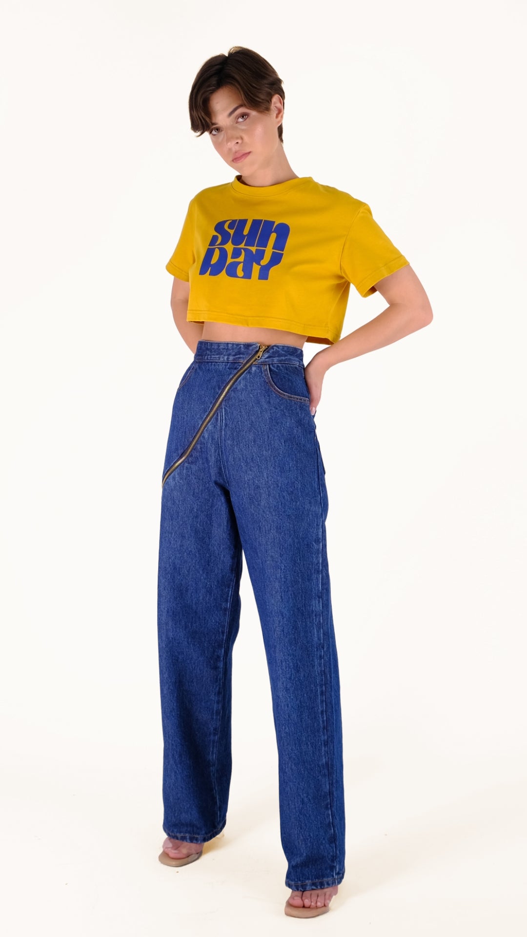 Minimal, καθαρό και με ξεχωριστή ταυτότητα. Το Jenny έρχεται σε σταθερό denim, με ψηλή μέση και ευθεία γραμμή που στέκεται όμορφα σε κάθε σώμα. Το λοξό φερμουάρ μπροστά λειτουργεί σαν statement στοιχείο, χωρίς να βαραίνει το σύνολο.