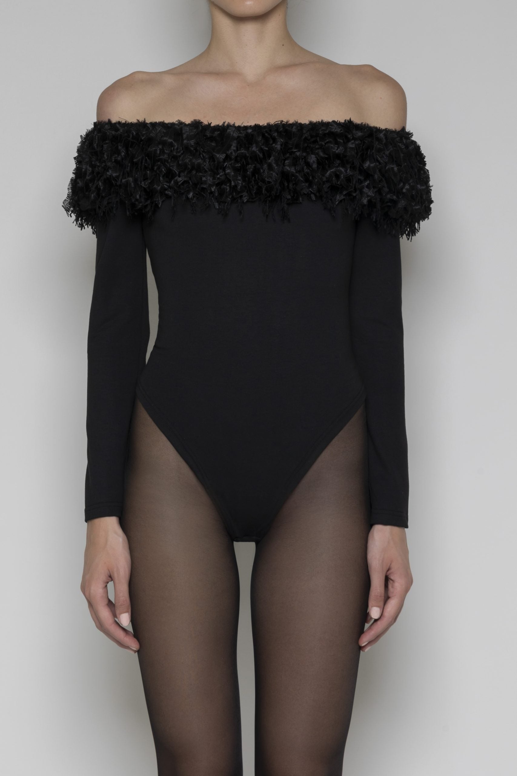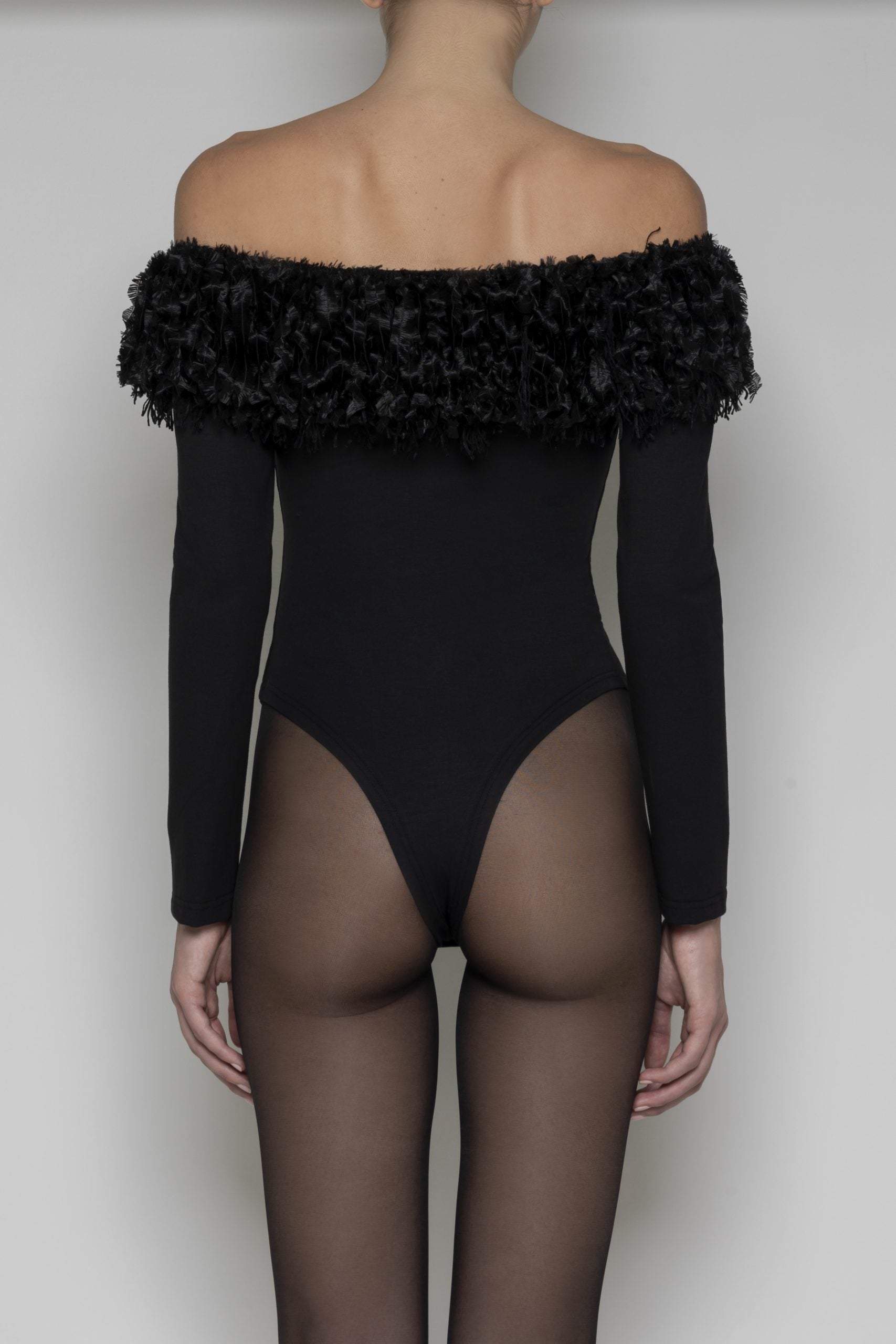 - Cotton bodysuit (96% cotton 4% elastane) with fringes