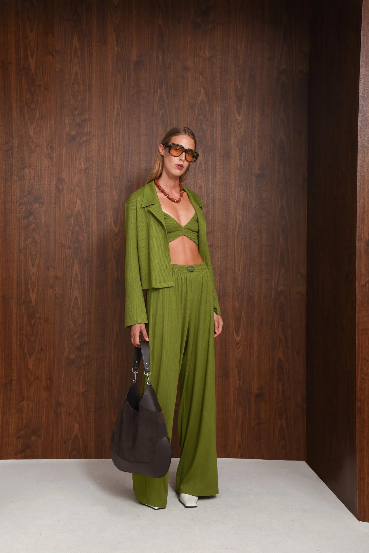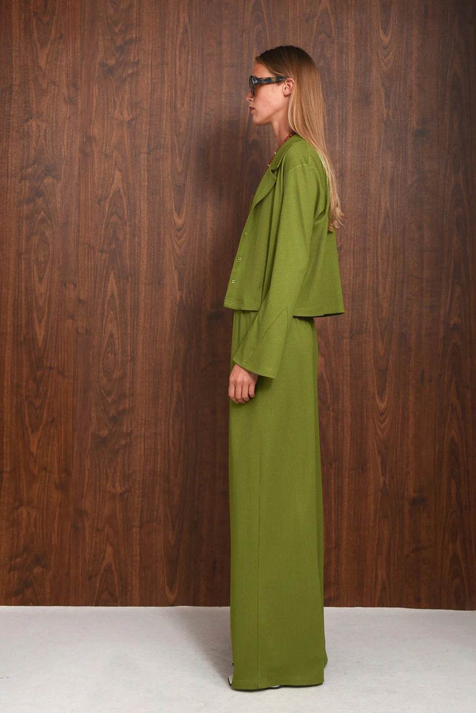 The Reflect top is a cropped, long-sleeve shirt with a relaxed fit and structured collar. Made from soft, ribbed fabric, it features a button-down front and subtly flared sleeves for an effortless flow. The lightweight texture makes it perfect for layering or wearing solo.